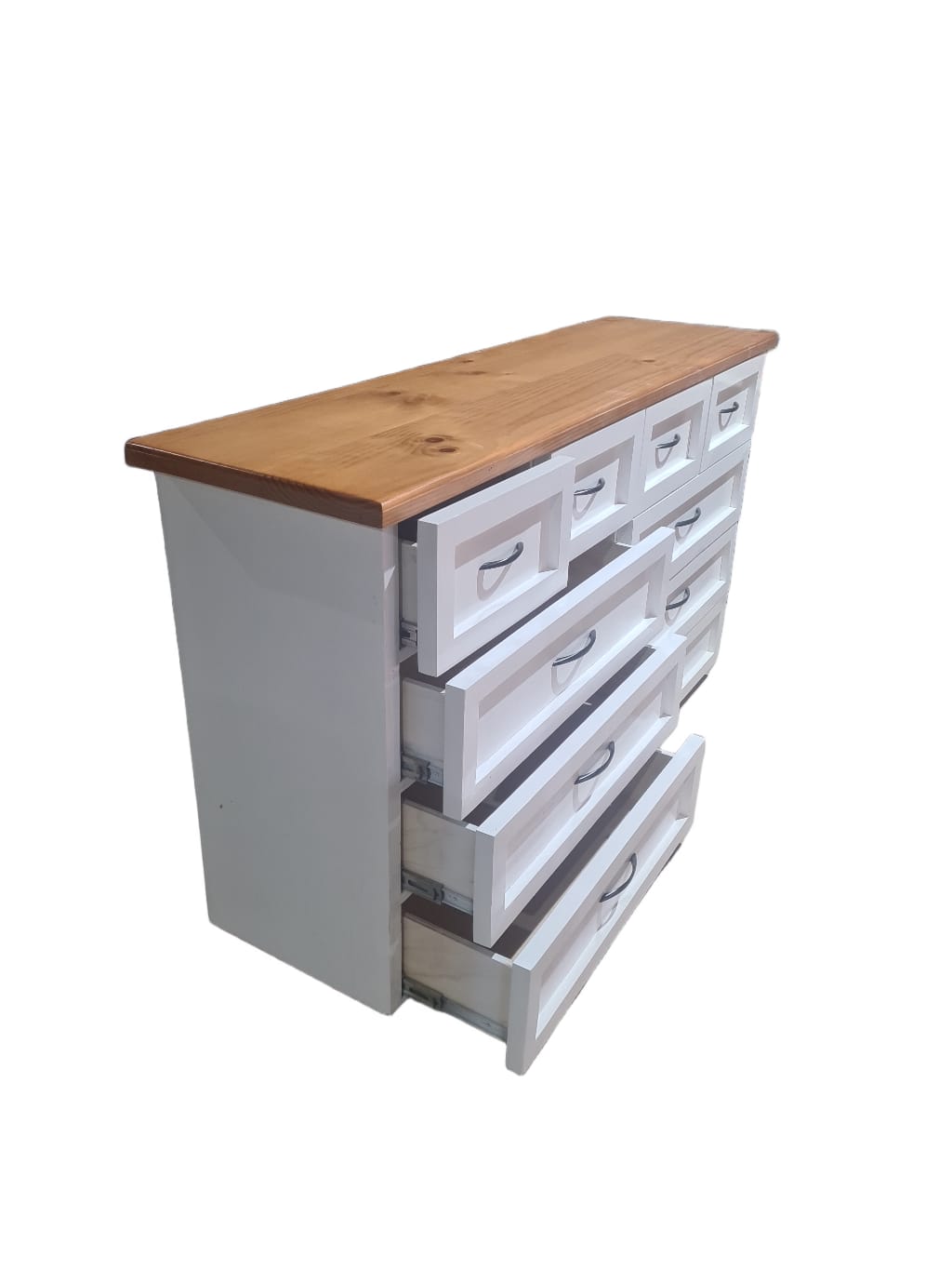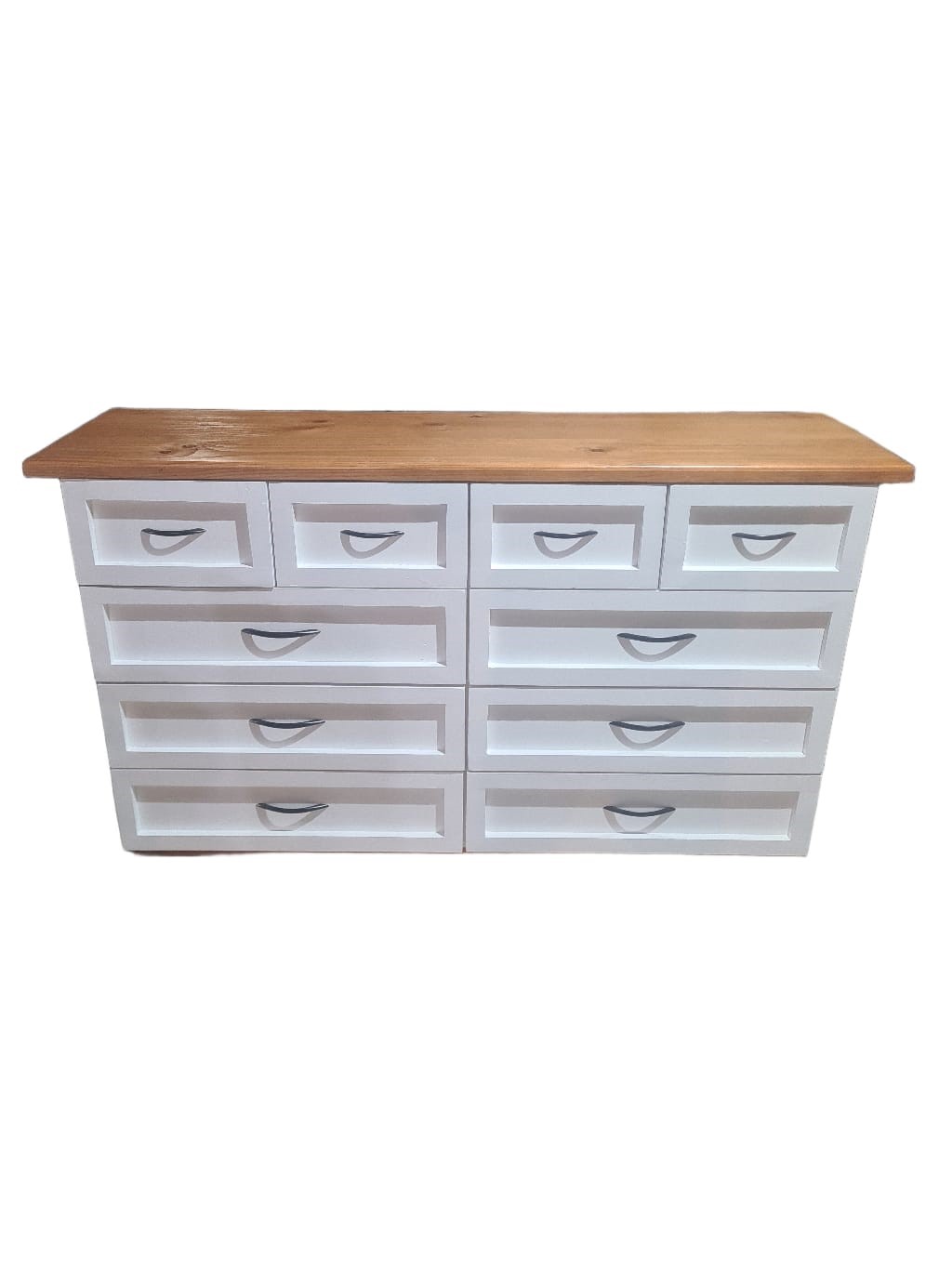 Cómoda Rustica Visby formato bicolor. Cubierta pino Insigne y terciado máster mueblería.  Estilo moderno con unos toques vintage, amplio espacio de almacenamiento interior y cuidadas terminaciones que brindarán funcionalidad y durabilidad.