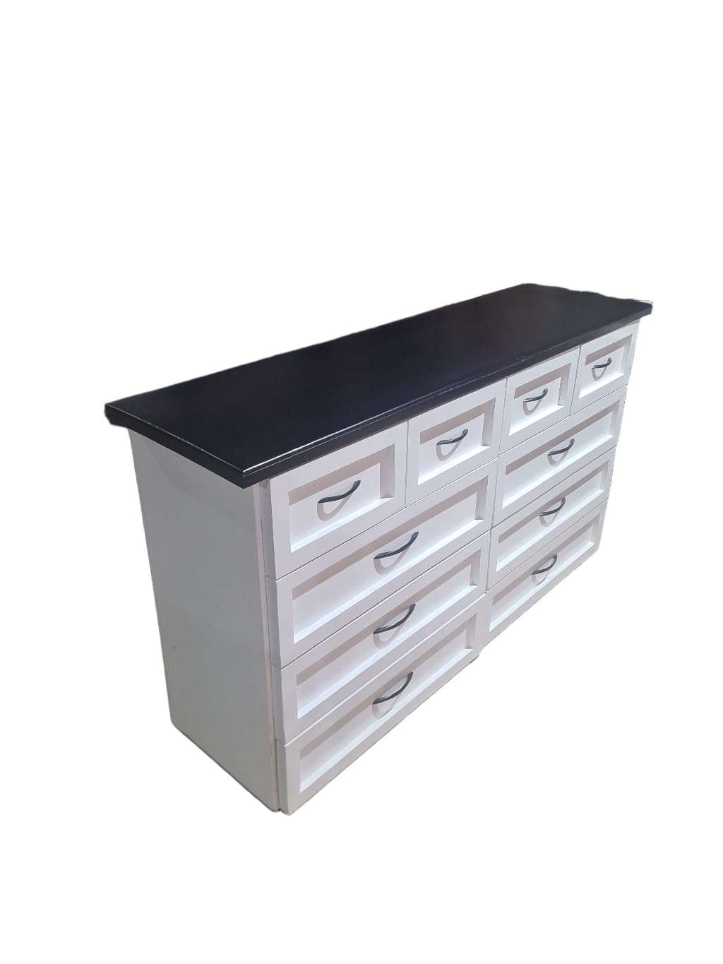 Cómoda Rustica Visby formato bicolor. Cubierta pino Insigne y terciado máster mueblería. Estilo moderno con unos toques vintage, amplio espacio de almacenamiento interior y cuidadas terminaciones que brindarán funcionalidad y durabilidad.