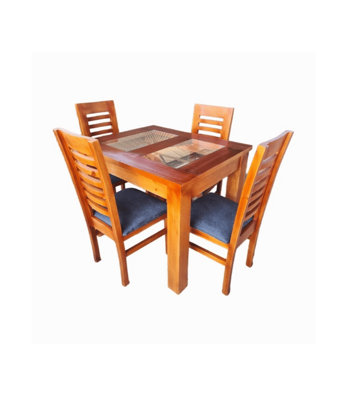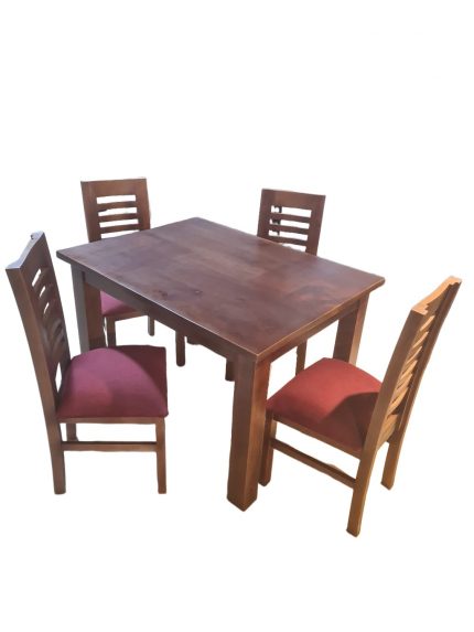 Comedor Florencia color Miel de madera sólida, NO ENCHAPADO de Pino Radiata o Insigne. Mesa cuadrada con 4 sillas firmes, armado con tarugos y pegamento de alta calidad para garantizar un producto resistente.