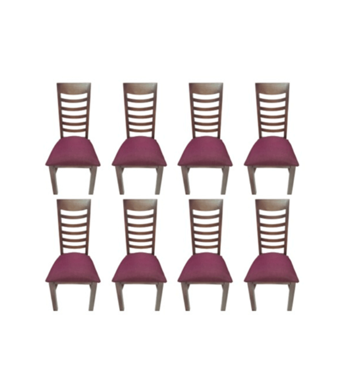 Pack 8 sillas modelo Némesis marca Koliat color nogal. Madera: Pino Radiata (seco en cámara el cual posee un rango de humedad entre el 12% a 15%. Para los ensambles se utiliza el adhesivo Titebond 50, en el encolado de madera por cara y canto y armado de muebles. Fraguado rápido y excelente resistencia a altas temperaturas y solventes